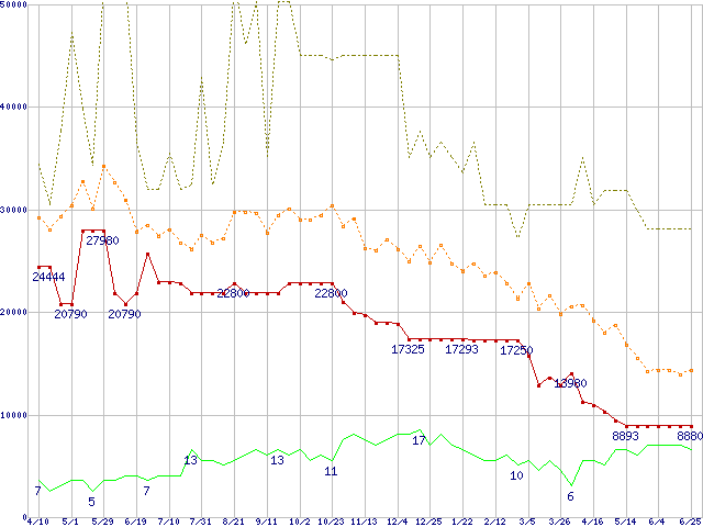 PC2700(DDR333) DDR SDRAM DIMMの最安値推移