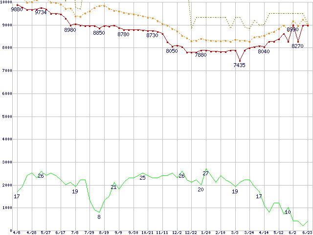 | Deskstar 7K250 HDS722512VLAT80 (120GB,8MB)の価格推移 | | | (2004年4月8日~2005年6月23日) |