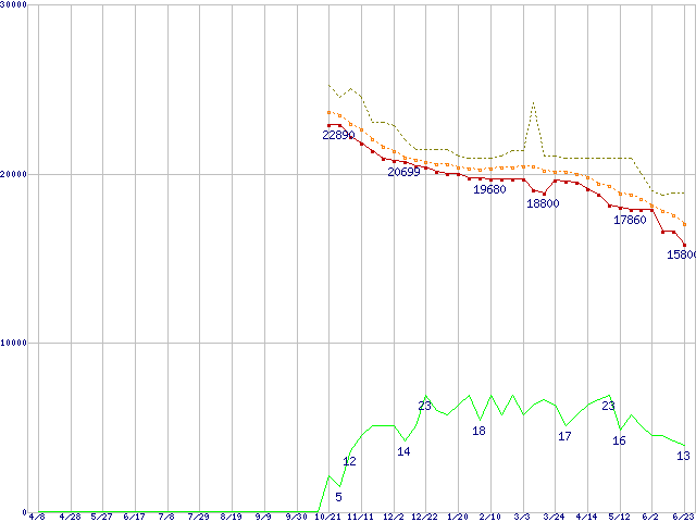 | DiamondMax 10 6B300R0 (300GB,16MB)の価格推移 | | | (2004年4月8日~2005年6月23日) |