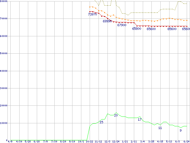 | Pentium M 765 (2.10GHz) リテールパッケージの価格推移 | | | (2004年4月9日~2005年6月24日) |