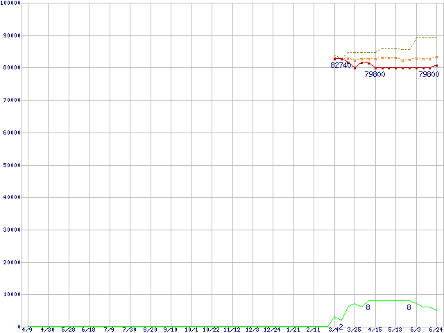 | Xeon 3.4GHz(FSB800,L2 2MB) リテールパッケージの価格推移 | | | (2004年4月9日~2005年6月24日) |