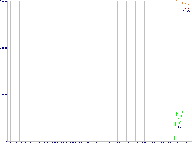 | Pentium D 820 (2.80GHz) リテールパッケージの価格推移 | | | (2004年4月9日~2005年6月24日) |