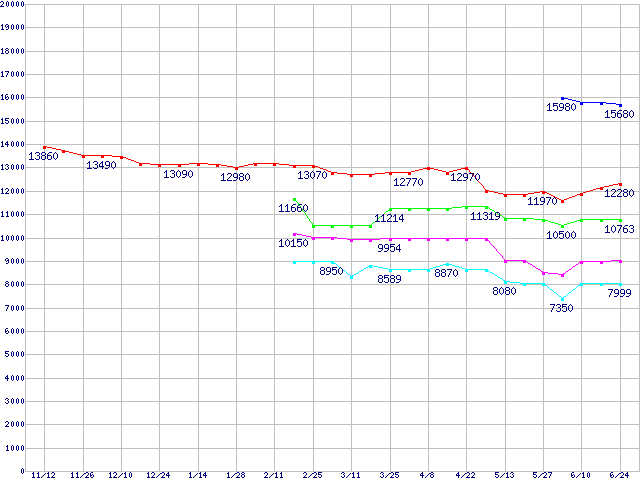 | Socket 754 (PGA,FSB 800MHz)の最安値推移 | | | (2004年11月12日~2005年6月24日) |