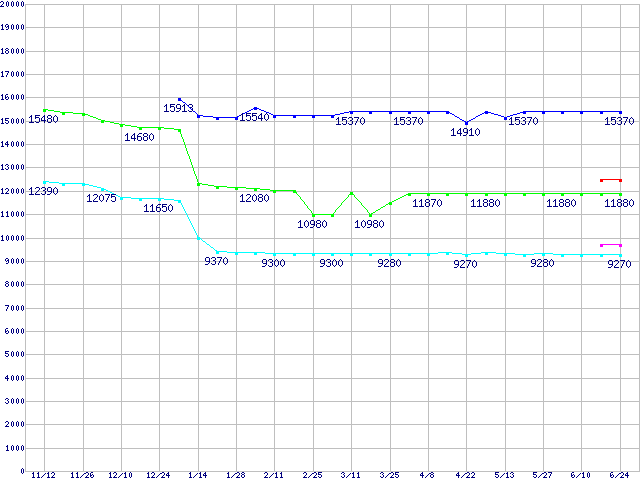 Socket 754 (PGA,FSB 800MHz)の最安値推移