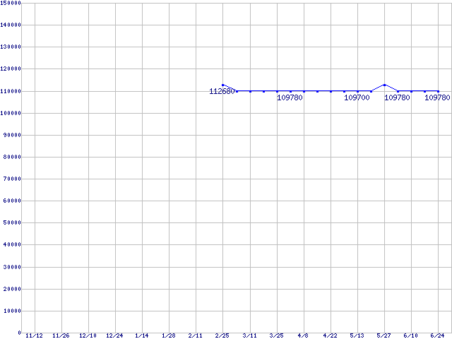 | LGA 775 (FC-LGA4,FSB 1066MHz,L2 2MB,Hyper-Threading,EM64T・NX bit対応)の最安値推移 | | | (2004年11月12日~2005年6月24日) |