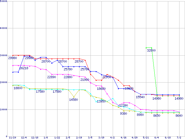 ※点線部は販売店が確認できなかった、または調査データがないことを示します