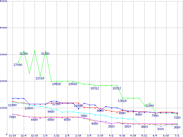 1GBモジュールの最安値推移