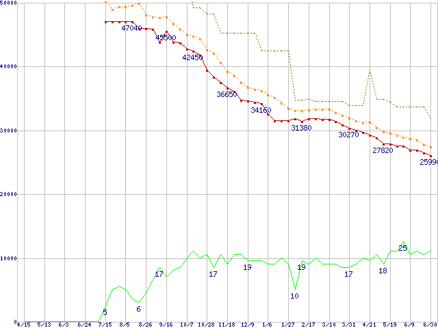 | Deskstar 7K400 HDS724040KLAT80 (400GB,8MB)の価格推移 | | | (2004年4月15日~2005年6月30日) |