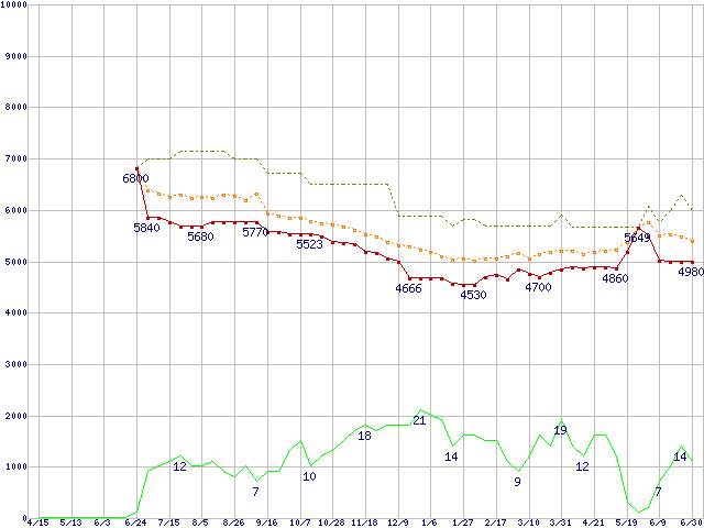 | Deskstar 7K80 HDS728040PLAT20 (40GB,2MB)の価格推移 | | | (2004年4月15日~2005年6月30日) |