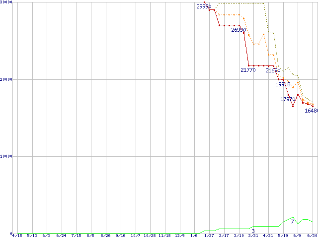 | WD Caviar SE WD3200JB (320GB)の価格推移 | | | (2004年4月15日~2005年6月30日) |