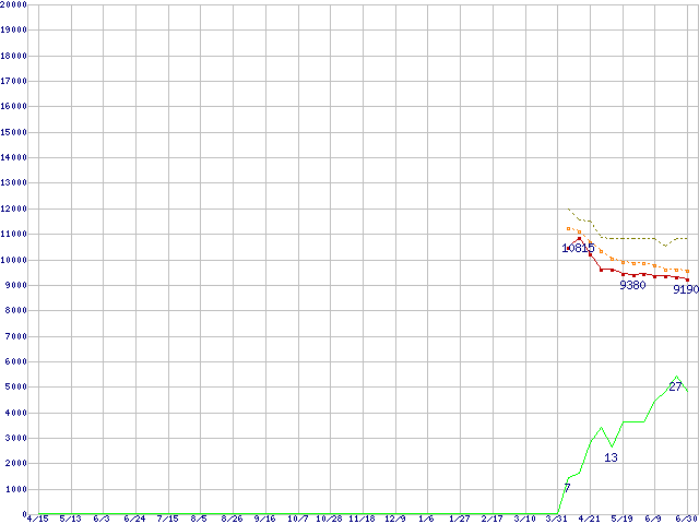 | Deskstar T7K250 HDT722516DLA380 (160GB,8MB)の価格推移 | | | (2004年4月15日~2005年6月30日) |