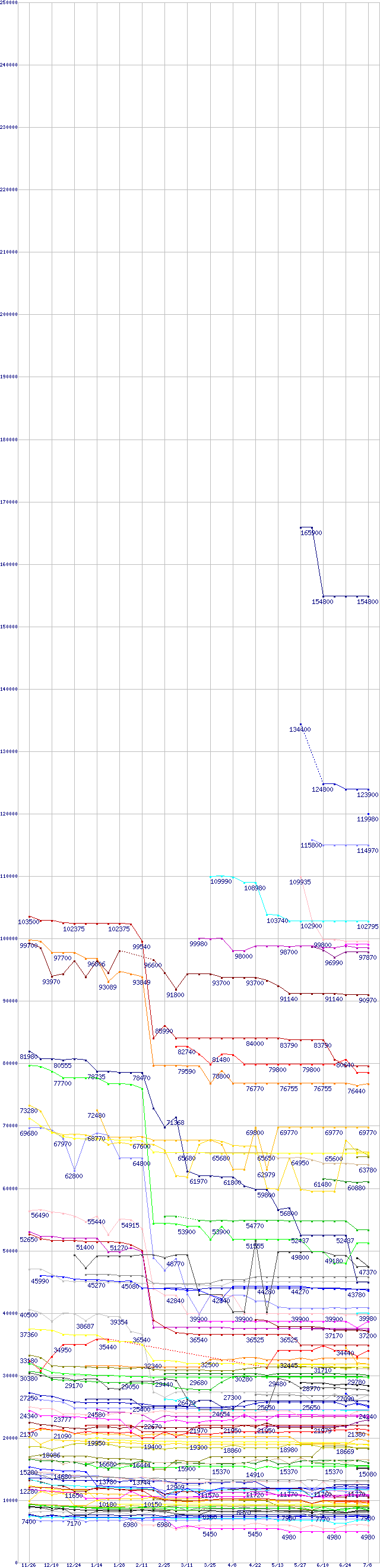 | CPU主要製品の最安値推移 | | | (2004年11月26日~2005年7月8日) |