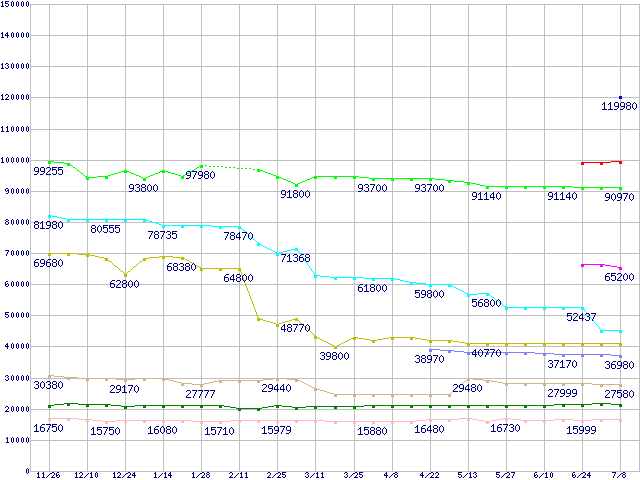 | Socket 939・FSB 1000MHzの最安値推移 | | | (2004年11月26日~2005年7月8日) |