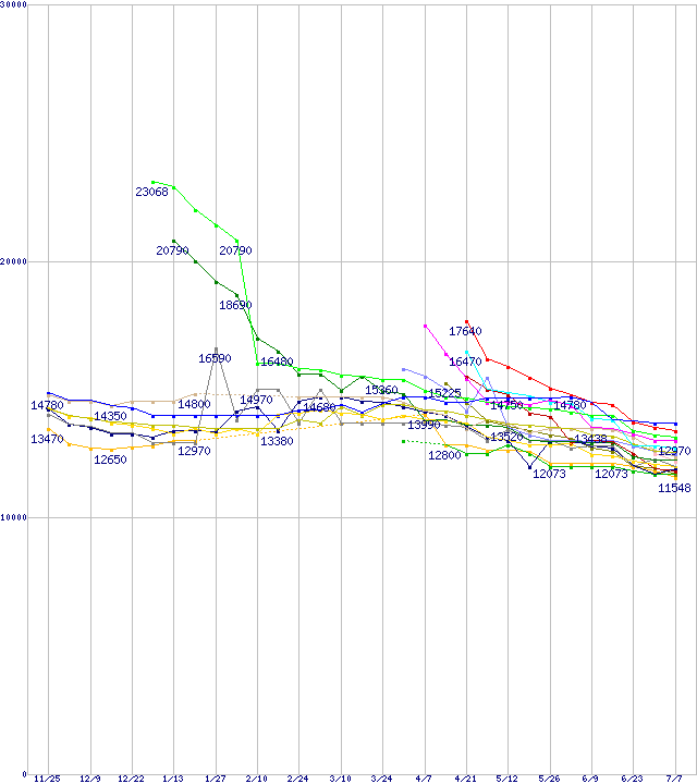 HDD 200~250GB未満の最安値推移