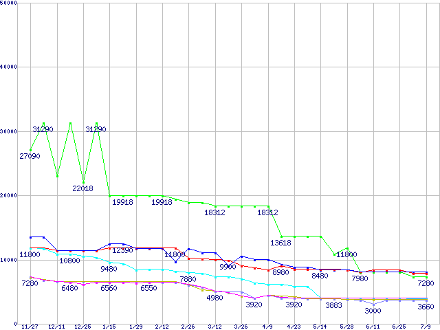 1GBモジュールの最安値推移