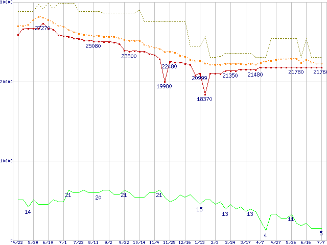 | 5A300J0 (300GB)の価格推移 | | | (2004年4月22日~2005年7月7日) |