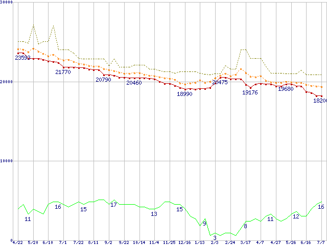 | WD740GD (74.3GB)の価格推移 | | | (2004年4月22日~2005年7月7日) |