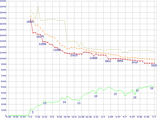 | ST3160827AS (160GB)の価格推移 | | | (2004年4月22日~2005年7月7日) |