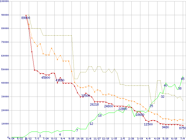 | PC2-4200* 1GBの価格推移 | | | (2004年4月24日~2005年7月9日) |