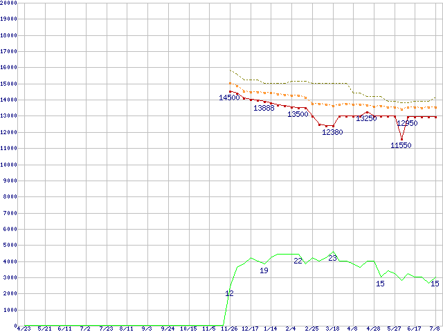 | Celeron D 345J (3.06GHz)の価格推移 | | | (2004年4月23日~2005年7月8日) |