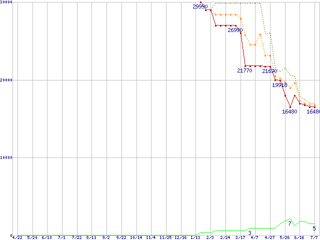 | WD3200JB (320GB)の価格推移 | | | (2004年4月22日~2005年7月7日) |