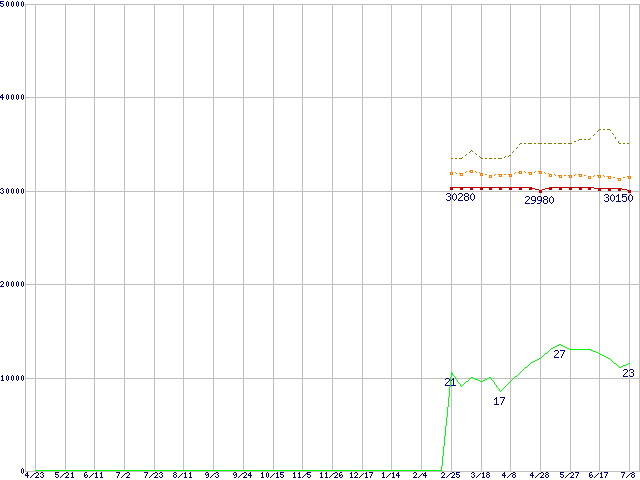 | Pentium 4 640 (3.20GHz)の価格推移 | | | (2004年4月23日~2005年7月8日) |
