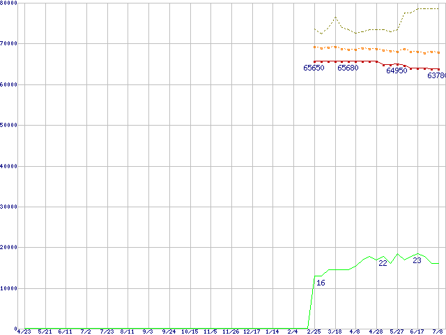 | Pentium 4 660 (3.60GHz)の価格推移 | | | (2004年4月23日~2005年7月8日) |