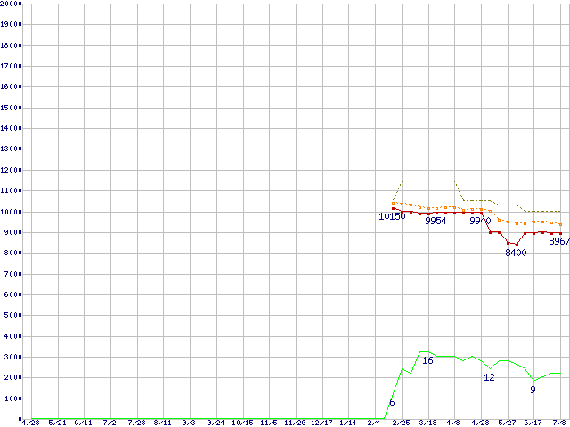 | Sempron 2800+(1.6GHz,L2 256KB,Socket 754)の価格推移 | | | (2004年4月23日~2005年7月8日) |
