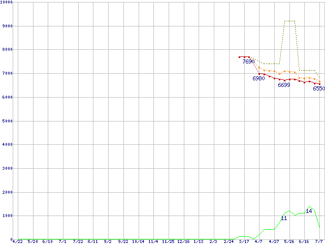 | 6B80P0 (80GB,8MB)の価格推移 | | | (2004年4月22日~2005年7月7日) |