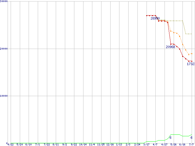 | WD3200JD (320GB)の価格推移 | | | (2004年4月22日~2005年7月7日) |