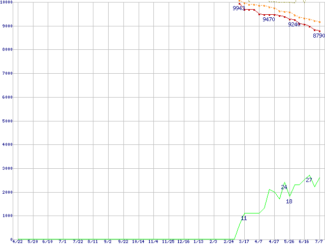 | HDT722516DLAT80 (160GB,8MB)の価格推移 | | | (2004年4月22日~2005年7月7日) |