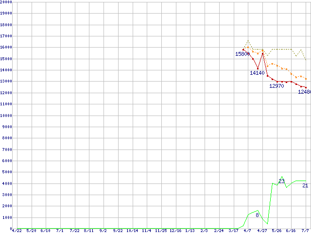 | HDT722525DLAT80 (250GB,8MB)の価格推移 | | | (2004年4月22日~2005年7月7日) |