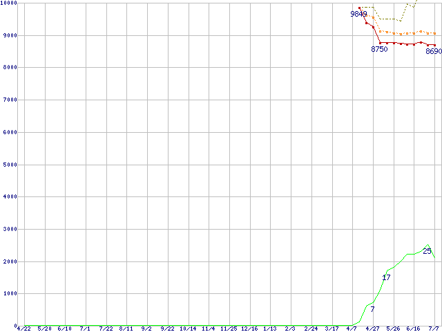 | 6L160P0 (160GB,8MB)の価格推移 | | | (2004年4月22日~2005年7月7日) |