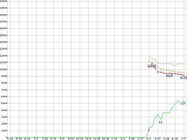 | HDT722516DLA380 (160GB,8MB)の価格推移 | | | (2004年4月22日~2005年7月7日) |
