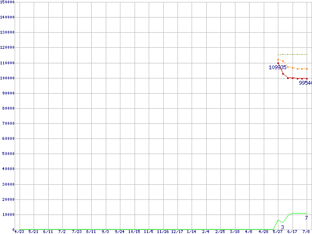 | Opteron 265(1.8GHz)の価格推移 | | | (2004年4月23日~2005年7月8日) |