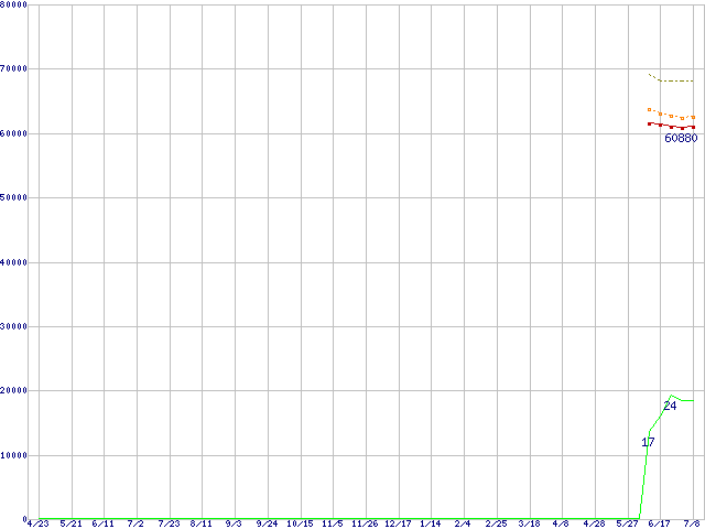 | Pentium D 840 (3.2GHz)の価格推移 | | | (2004年4月23日~2005年7月8日) |