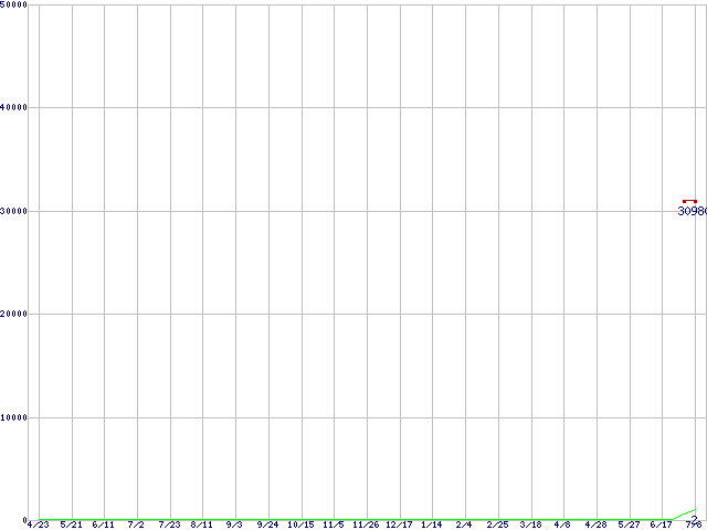 ※このグラフは過去のデータも税率5%相当に調整した税込み相当額のグラフです。 税率変更や、総額表示方式導入(2004年4月)の影響は除いています。 | | | ●凡例 | 最安値 (点線部は販売店未確認 または未調査) | 平均値 | 最高値 | ショップ数 |