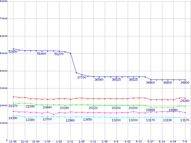 Socket 754 (PGA,FSB 800MHz)の最安値推移