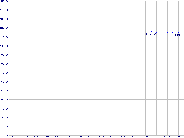| LGA 775 (FC-LGA4,FSB 800MHz,L2 1MB×2,Dual Core,Hyper-Threading,EM64T対応)の最安値推移 | | | (2004年11月26日~2005年7月8日) |