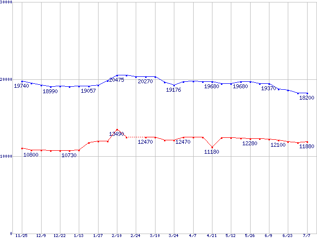 WD Raptor (10000rpm,Serial ATA/150,8MB)の最安値推移