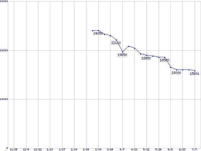 | MaXLine III (7200rpm,16MB,Ultra ATA/133)の最安値推移 | | | (2004年11月25日~2005年7月7日) |