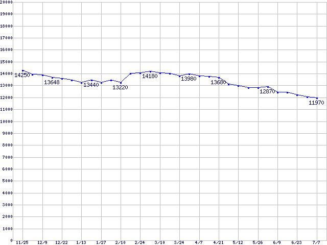 | MaXLine Plus II (7200rpm,8MB,Ultra ATA/133)の最安値推移 | | | (2004年11月25日~2005年7月7日) |