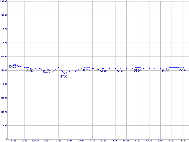 | DiamondMax Plus 8 (7200rpm,2MB,Ultra ATA/133)の最安値推移 | | | (2004年11月25日~2005年7月7日) |
