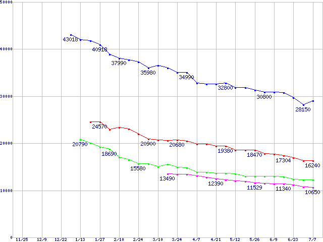 | Barracuda 7200.8 (7200rpm,Ultra ATA/100,133GB/Platter)の最安値推移 | | | (2004年11月25日~2005年7月7日) |