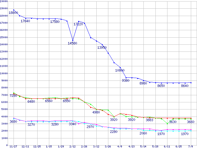 PC3200(DDR400) DDR SDRAM DIMMの最安値推移