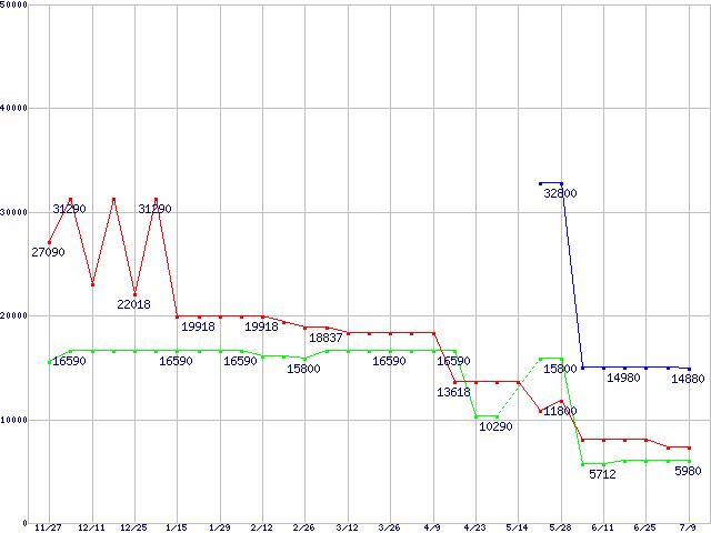 PC2700(DDR333) DDR SDRAM DIMMの最安値推移