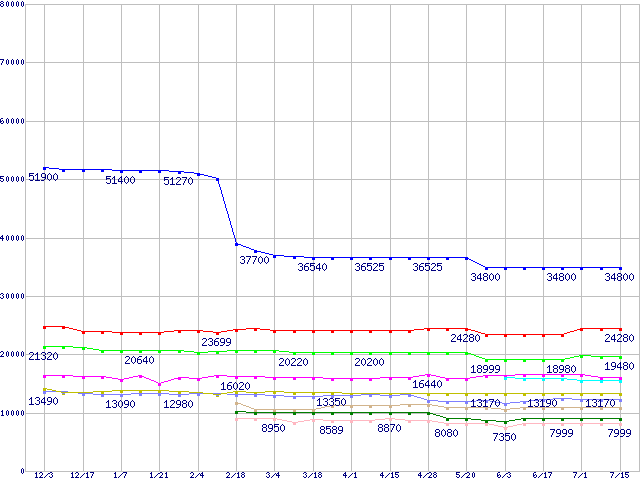| Socket 754・FSB 800MHzの最安値推移 | | | (2004年12月3日~2005年7月15日) |