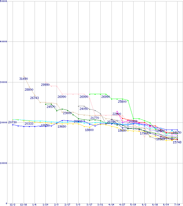 HDD主要製品(最安値1万5千円~2万円未満)の最安値推移