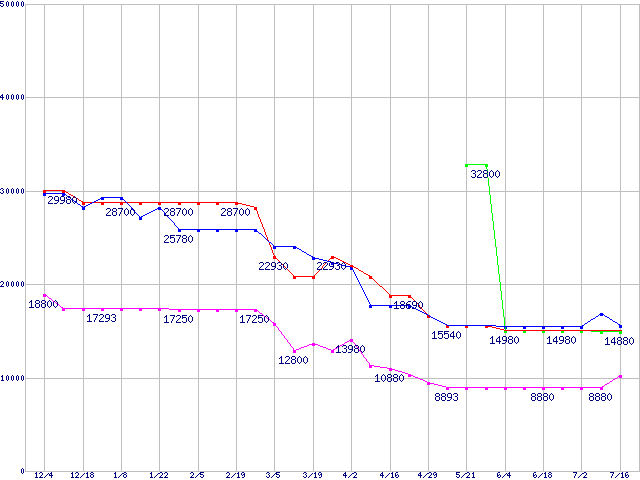メモリ主要製品(最安値1万円以上)の最安値推移