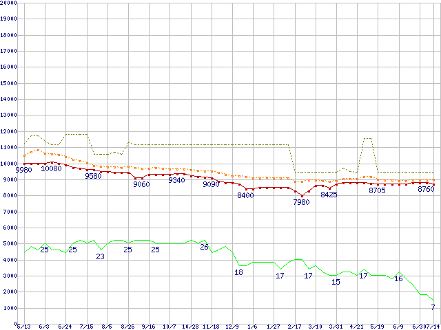 | 6Y120M0 (120GB)の価格推移 | | | (2004年5月13日~2005年7月14日) |